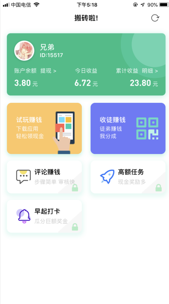 搬砖啦每日大量应用试玩任务,试玩3分钟就能领取现金奖励,真实可靠,试玩单价0.9元,10元即可提现提现支付宝,不说了,我要去搬砖啦,快来下载试玩吧!