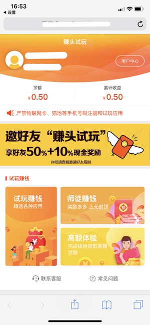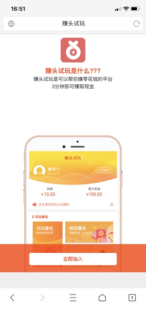 注册绑定手机0.2元,试玩赚钱任务0.6-1.2元;必须使用safari浏览器下载安装。满2元提现到微信钱包,工作日提现次日点前到账。