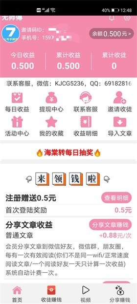 1.注册即送0.5元,转发文章单价0.88元,支持微信好友、微信群、朋友圈。 2.邀请有效好友最高奖励38元+二级徒弟累计50%提成,注册绑定师傅id:583992。 3.收益上分快,首次提现5元,后续10元起,支持微信提现,当天即可到账。