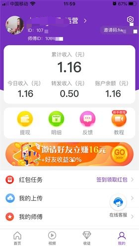 1.收益稳定大平台,注册即送红包,单价涨至永久0.5元。 2.收徒每位最高奖励16元,另外享受20%+10%额外分成。 3.永久满5元可提现,当天到账,支持上传文章,签到。