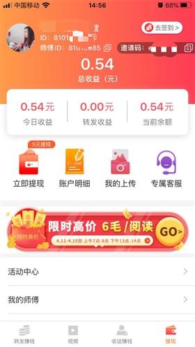 1.转发文章到微信群或者朋友圈,被有效阅读一次收益0.36元(上线限时单价0.6元),规定时间内转发收益倍增,爆力涨分。 2.有自主上传文章功能,邀请1位好友最高奖励19元+永久享受两级50%转发收益上贡,再加额外限时收徒666元红包奖励。 3.坚持每天签到,奖金越来越高,来自颐家科技凤梨旗下平台,赚满5元即可微信提现,之后还是5元起,基本秒到账。