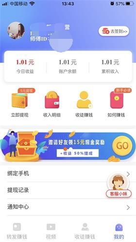 1.下载登陆送1元,每日签到领奖励,转发分享单价3毛(4.7~4.10限时6毛)。 2.邀请好友活动奖励15元,二级好友累计50%提成,邀请越多赚越多,稳定靠谱。 3.支持自主导入文章。提现便捷,首次满5元微信提现,后续满10元起提现,基本秒到账。