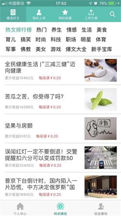 1.注册即送0.5元,转发单价2毛,庆祝新上线,活动多多,有收徒大赛活动,3万元奖金等你来抢。 2.首次满5元、后续10元即可申请微信提现,提现结算稳定,24小时到账。 3.收徒轻松赚钱奖励高,每个有效徒弟奖金15~20元,还可享受2级徒弟35%的收益分成。每天签到就有红包领,千万别错