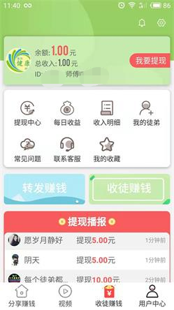 1.注册即送1元,分享转发有效阅读单价0.4元,庆祝新上线(活动期间0.7元),疯狂涨分。 2.收徒轻松赚钱,收徒最高奖励16元+永久累计50%额外分成奖励。 3.首5元可微信提现,后续10元起可提现,当天到账。简单转转,赚钱满仓。