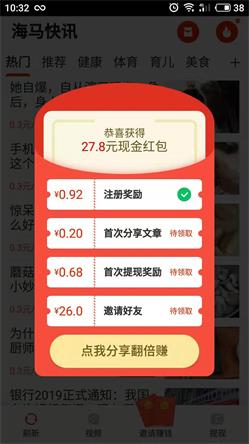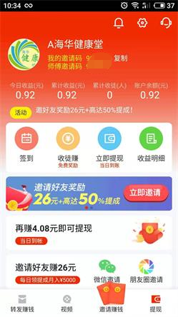 1.登录即可获得0.92元奖励,每天签到红包领不停歇。 2.邀请好友共获得26元+高达50%的转发提成。 3.新人专享5元提现,支持微信提现,当天到账。