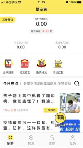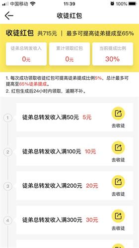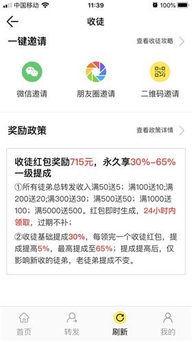 1.新用户注册登录送1元,转发赚钱单价1元起,最高可提升至1.7元。 2.转发收入满10元送2元,满50送5,满100送10,满200送20,满300送30,满500送50,满1000送100。 3.收徒赚钱,永久享受徒弟转发收益30%起,最高可提升至65%。 4.徒弟总转发收入满50赠师父5元,满100赠10,满200赠20,满300赠30,满500赠50,满1000赠100,满5000赠500;红包手动领取,24小时内过期,每领到一个红包收徒提成提高5% 5.赚满10元即可申请提现,支持提现到微信,当天提现当天到账。