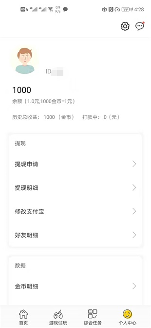 1、注册就送1元(到平台账上),3元可提现,无手续费,提现快速到账(1元=1000金币)。 2、由于新平台玩的人少,游戏试玩排行奖励竞争小(上百、上千的奖励拿到手软),每天总游戏收入排行榜十几块就可以上榜,甚至有时几块都能上榜拿奖励。同时每天更新任务超多,大量第一充值档基本全返的棋牌游戏。 3、可领取饿了么红包(不管新老用户),用了红包还可以返金币奖励,相当于折上折。 4、还可以看小说领奖励。
